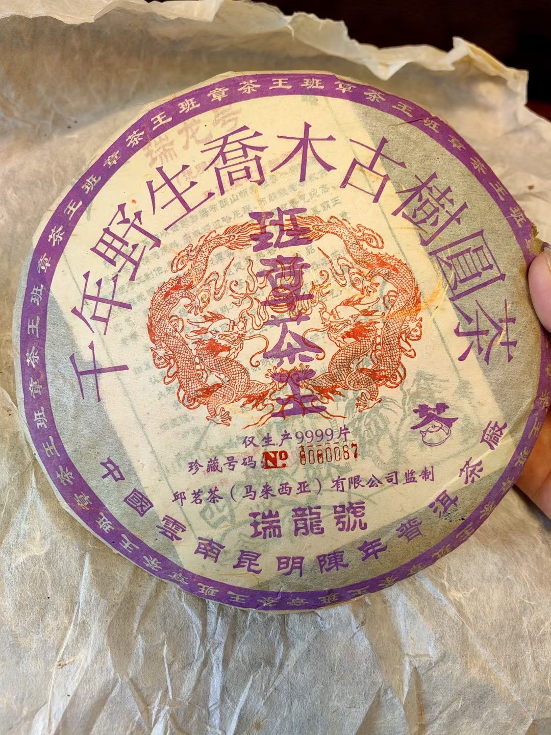 01年邱茗定制.班章茶王.橡筋饼 陈年普洱 瑞龙号班章茶王千年野生乔木古树 工艺好,仓储好,原料好,才能转樟陈香,品质高上,茶力足,茶味饱满,留口极佳