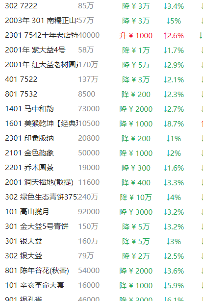 经历xxx事件强烈冲击,行情进行了深度回调,市场也受到了不小的波及。千羽孔雀 轩辕号在内的明星产品都有跌幅,到目前为止很多产品跌幅达到很多藏客的建仓意愿,陆续有资金进场抄底建仓,机会往往是跌出来的,遇到好的产品守住它,时间是大益最好的朋友,手上的大益茶将是你最好的陪伴!