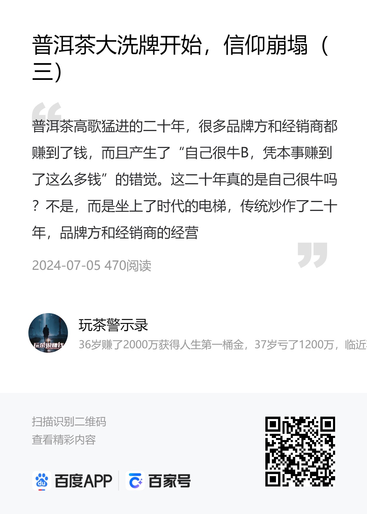 普洱茶大洗牌开始,信仰崩塌(三)
