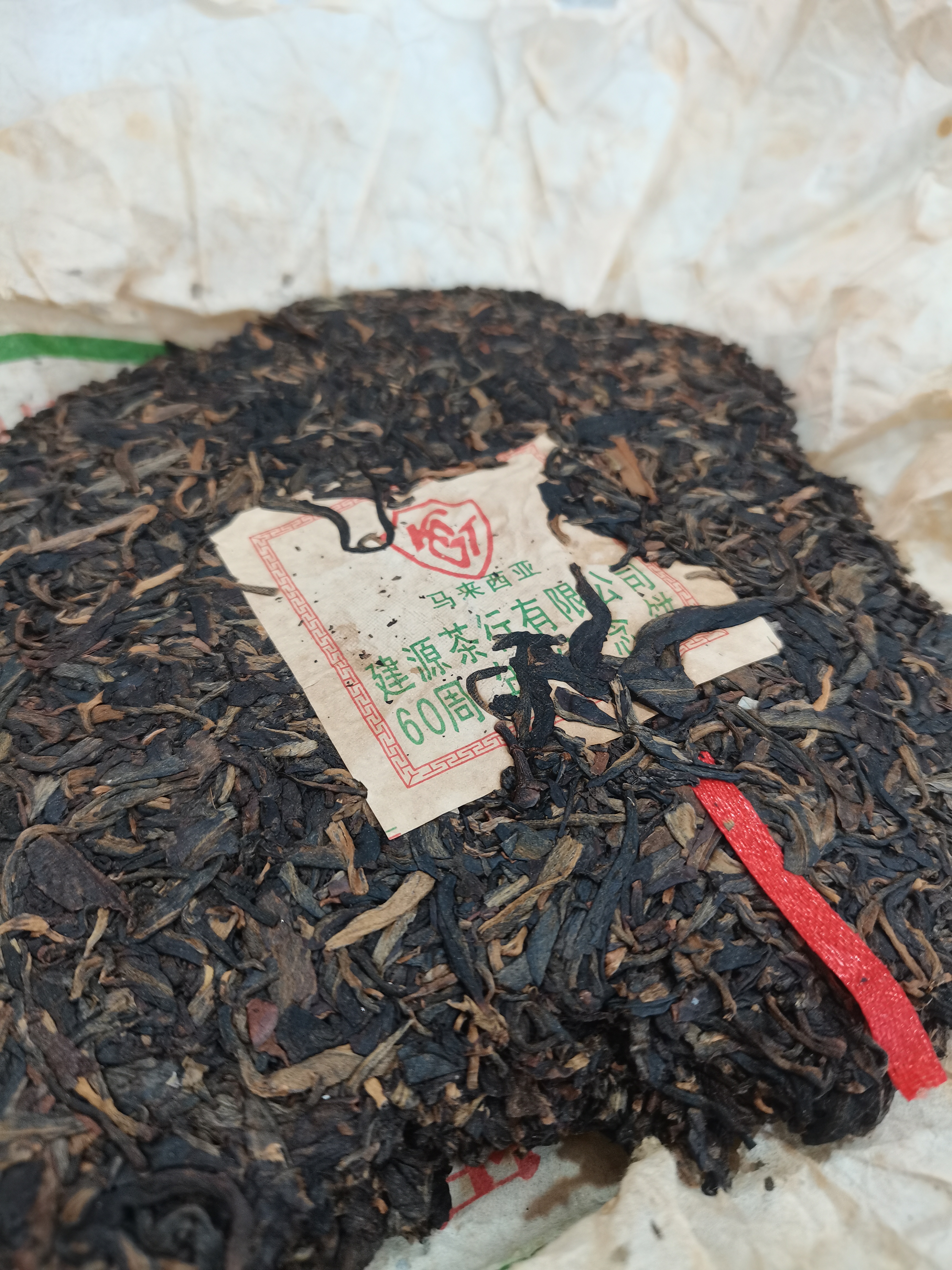 媲美兴海302景迈风格的千年古树茶 05年马来西亚建源茶行60周年纪念饼,景迈千年古树茶,精选陈年老料压制,高级烟香入水,茶味浓酽,蜜韵回甘足,茶汤饱满,尾水冰糖甜