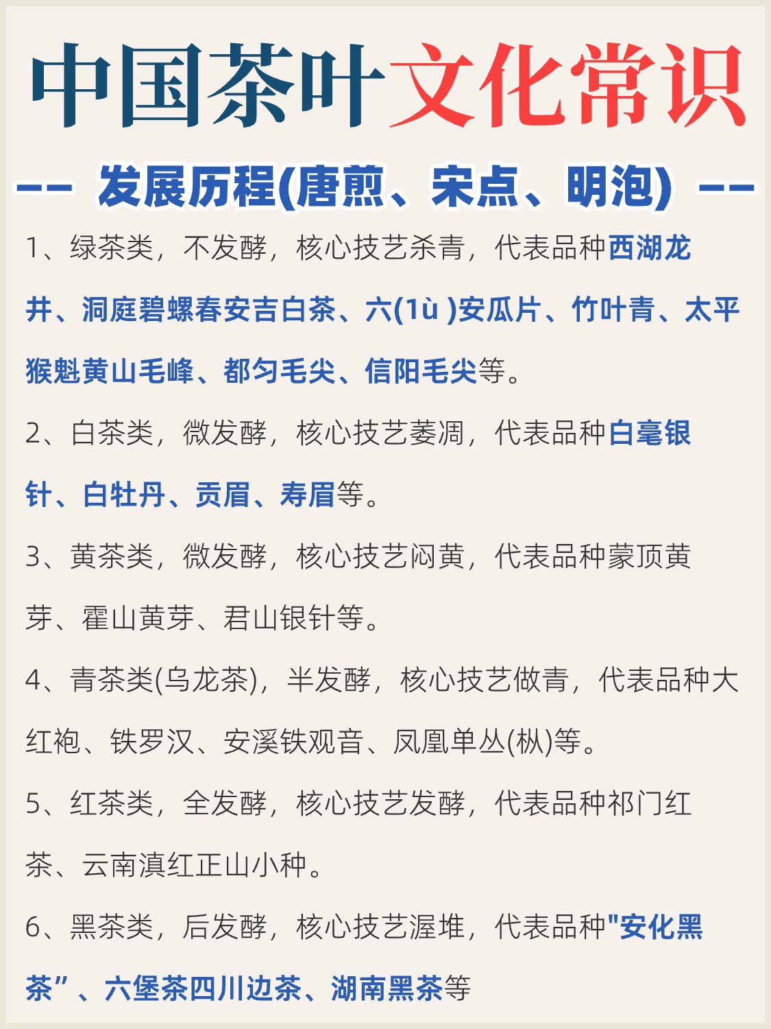 🍵✨茶韵悠长,探秘中国茶叶常识宝典📚✨ 🌿每一叶都是自然的馈赠,每一泡都是文化的传承!🍃 你是否也对那杯中流转的绿意、醇香,满心好奇?👀 🔍【绿茶清新】龙井、碧螺春... 清新如晨露,唤醒你的每一个清晨!🌞 每一口都是山间的云雾,每一缕香都是春天的味道~🌸 🍂【红茶醇厚】正山小种、滇红... 暖胃又暖心,冬日里的温柔拥抱!🔥 那抹深邃的红,藏着时间的秘密,品一口,岁月静好~🌟 🌸【乌龙茶韵】铁观音、大红袍... 半发酵的艺术,香高味醇,回味无穷!🍵 每一泡都是匠心的展现,每一口都是味蕾的旅行~🚀 🍵【白茶淡雅】白毫银针、寿眉... 自然晾晒,锁住最初的味道,清雅脱俗!🌙 淡淡的,却直击心灵,仿佛能听见山间风吟,溪水潺潺~🌊 🍂【黑茶沉稳】普洱、六堡... 越陈越香,时间的味道,历史的沉淀!📜 一壶老茶,一段故事,品的是茶,悟的是人生~🧘♀️ 🌈中国茶,不仅仅是一种饮品,它是哲学的体现,是生活的艺术!🎨 快来一起,沉浸在这千年的茶香里,感受那份独有的东方韵味吧!🎉