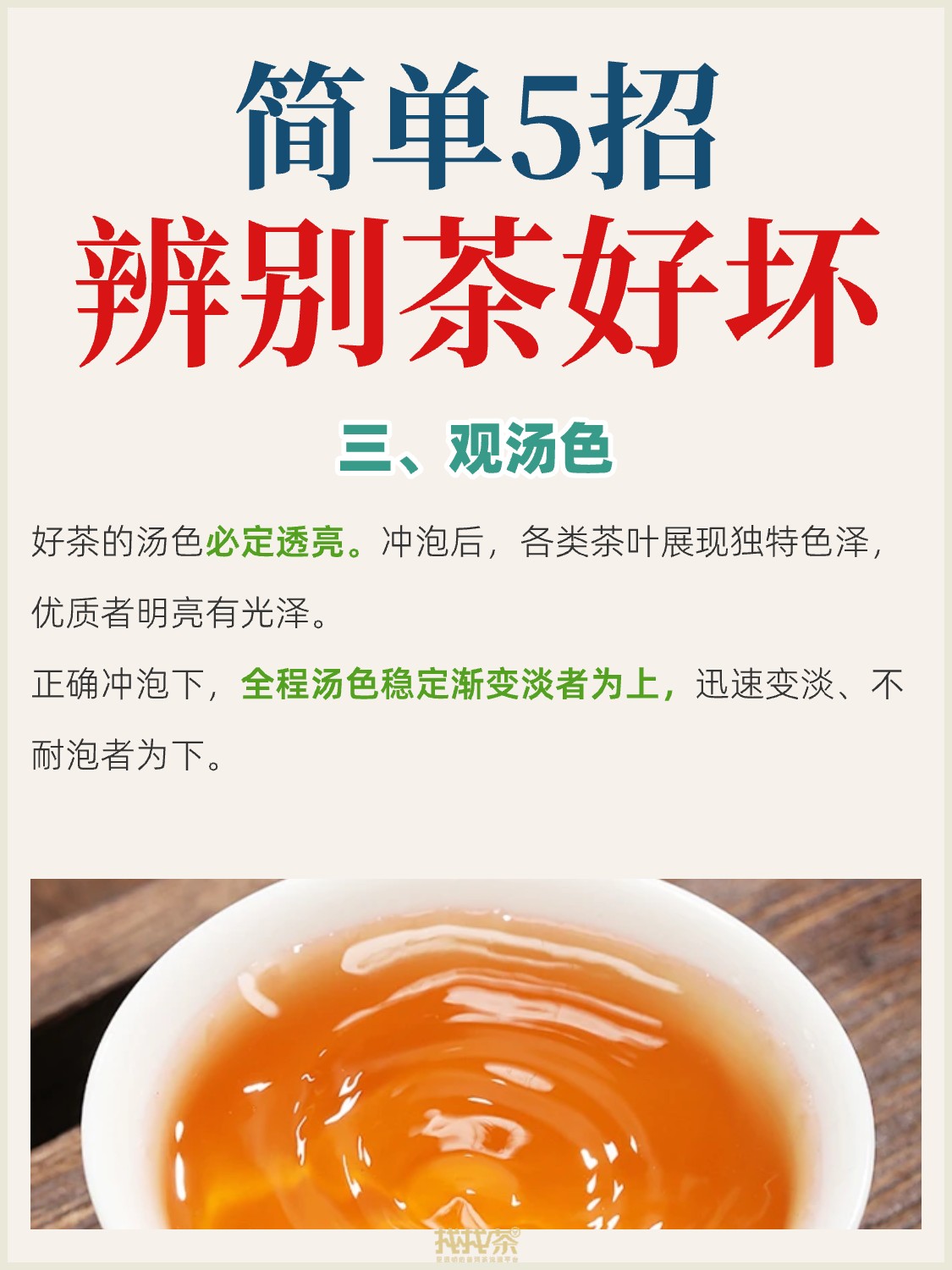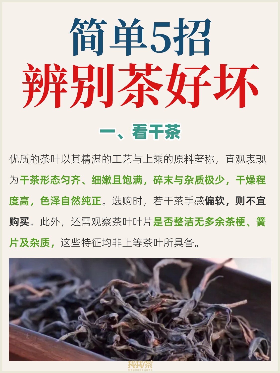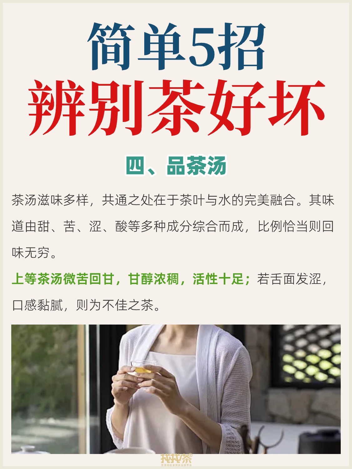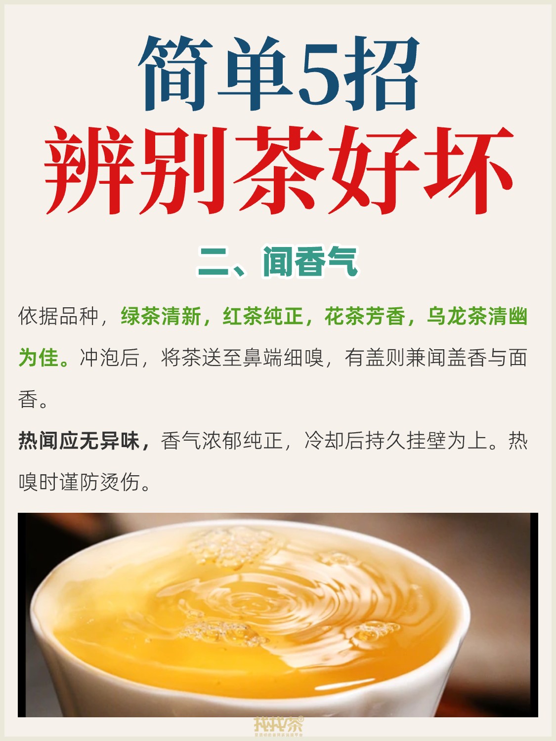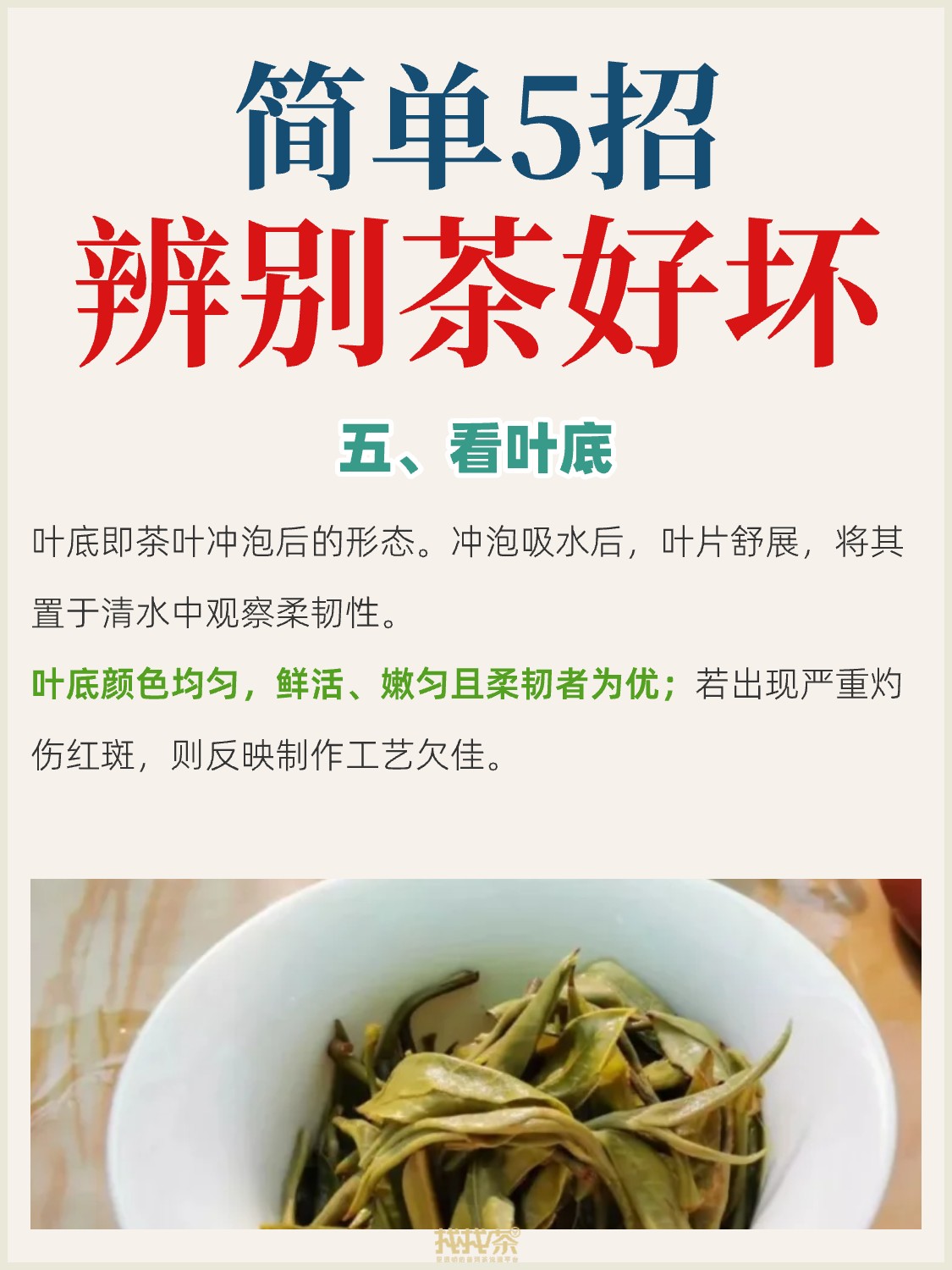 ✨🍵茶叶鉴赏秘籍,五招选出心头好!🍃 1️⃣ 👀 干茶大赏:优选工艺,好料在手! 好的茶叶,干茶匀称厚实,无碎无杂,干燥自然色泽亮。手感疲软?No No No!叶片整洁无梗,才是上等之选哦!🌿 2️⃣ 👃 香气扑鼻:闻香识茶,品种各异! 绿茶清新,红茶纯正,花茶醉人,乌龙清幽。冲泡后,热闻无异味,香气纯正持久,冷却挂壁更佳!小心蒸汽,温柔以待~💨 3️⃣ 👀 汤色透亮:好茶如镜,光彩照人! 冲泡后,茶汤明亮有泽,全程稳定渐变淡,才是品质象征。不耐泡?那可能是茶缘未到啦!🌟 4️⃣ 👅 味蕾盛宴:甘苦交织,回味无穷! 微苦带甘,甘醇浓稠,活性满满,才是好茶真谛。舌面涩?口里黏?那就say goodbye吧!😋 5️⃣ 🌿 叶底揭秘:舒展如生,柔嫩为佳! 茶叶泡开,叶底鲜活嫩匀,柔韧性十足。红斑蕉叶?那可能是工艺小遗憾。清水中一窥究竟,优质茶叶不言而喻!🌱 快来试试这五招,让你的茶桌从此不凡!🍃✨