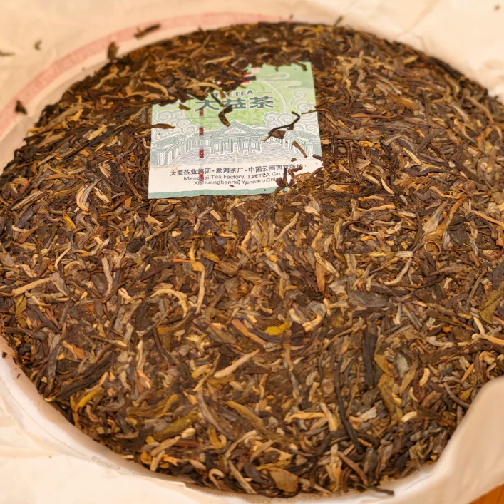 用料与汤感:茶饼拼配了相当比例的陈年原料,青味褪去较快,适口性相对更好。茶汤清黄透亮,入口滋味清甜,生津回甘表现不错,口腔内有清凉感。