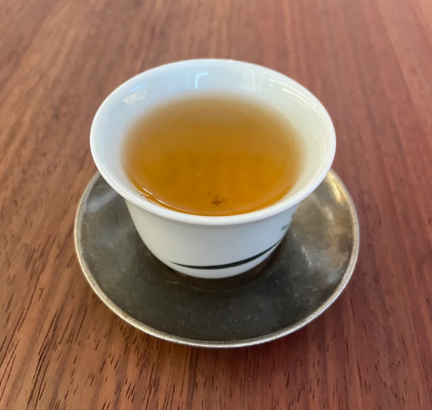 汤色深黄明亮,茶香丰盈,蜜甜香浓郁,伴着百花果香,汤香饱满,蜜甜与回甘生津交织。