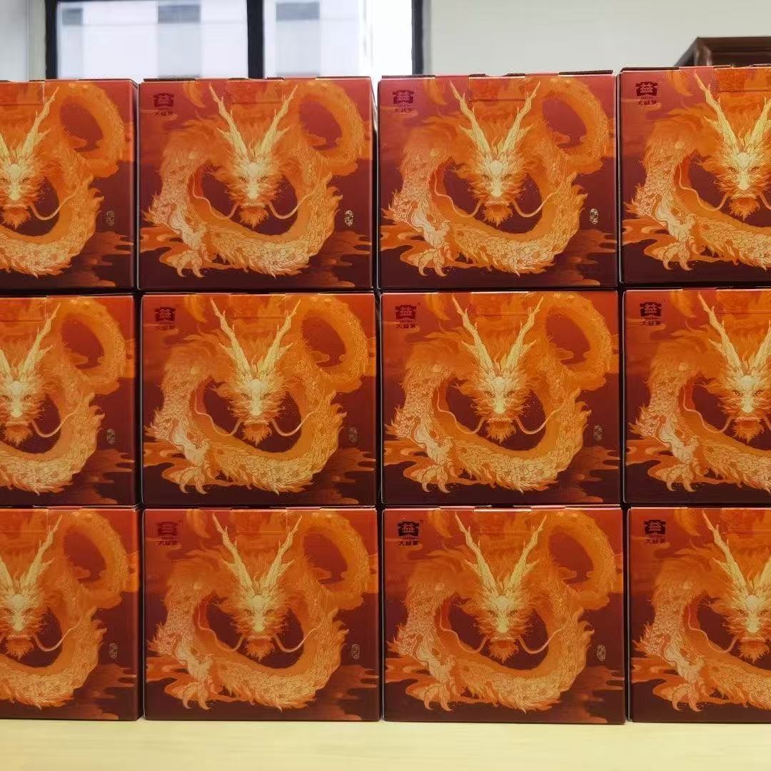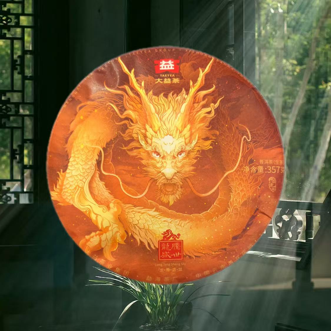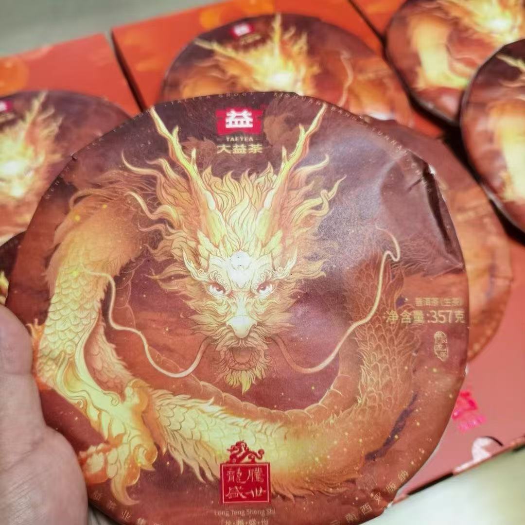 大益2024年甲辰龙年生肖纪念茶「2401龙腾盛世」以布朗山核心古茶园大树茶为原料,饼形圆润饱满,条索肥壮油亮,银毫突显,干茶散发独特烟蜜香。茶汤蜜黄流金,入口苦底明显但化开迅速,回甘强烈,烟香与花香交织,层次分明,中段呈现布朗茶特有的霸气与细腻,尾水甜润如冰糖,清凉感持久。叶底黄绿匀整,柔韧舒展,印证原料优质与工艺精湛。作为生肖系列茶,其五爪金龙包装设计彰显文化寓意,市场定位高端,当前行情显示其具备稳定竞争力,尤其陈化预期明确,收藏价值突出。