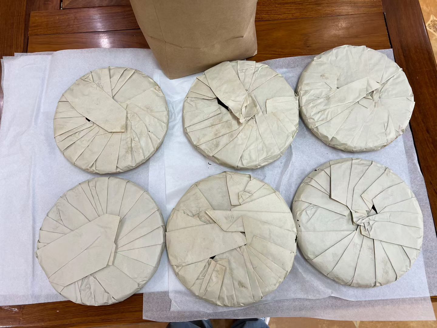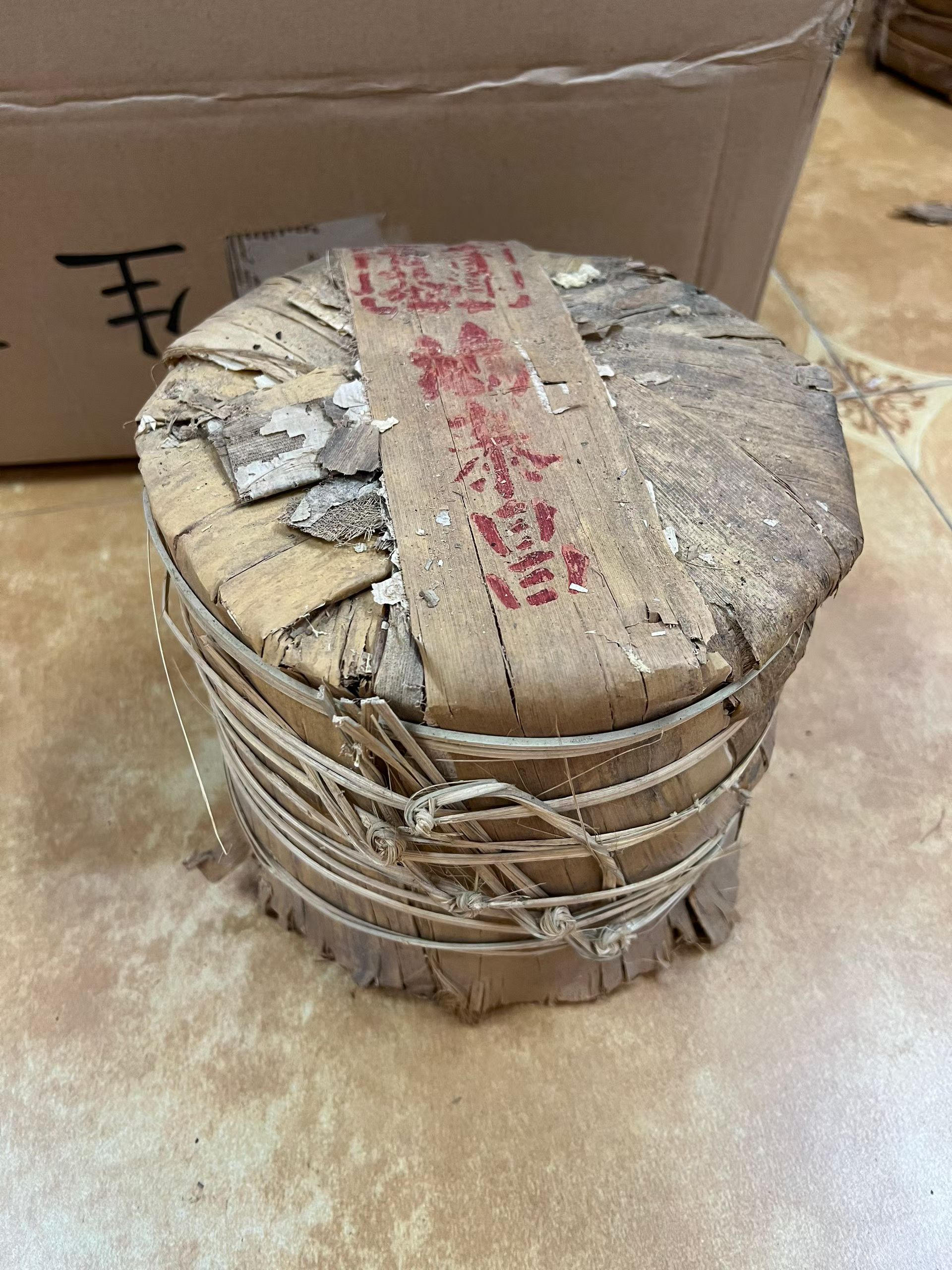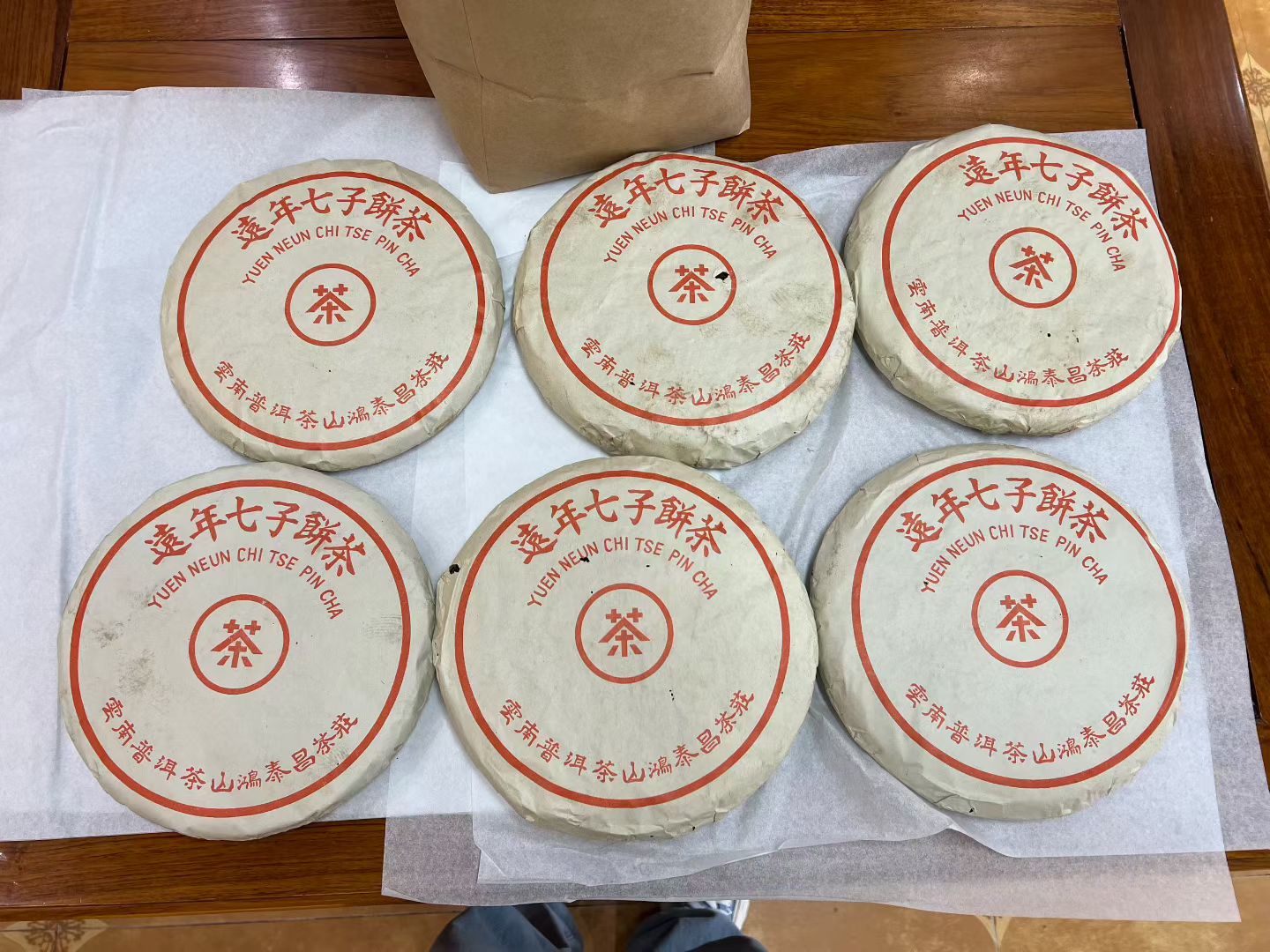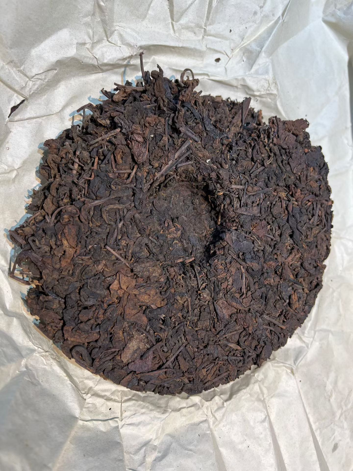 #七十年代鸿泰昌青饼,饼形大而厚!因时间的变化,茶叶拿起来很轻盈。口感厚实饱满且有米汤感、有陈年木质香、参香药香,体感强!