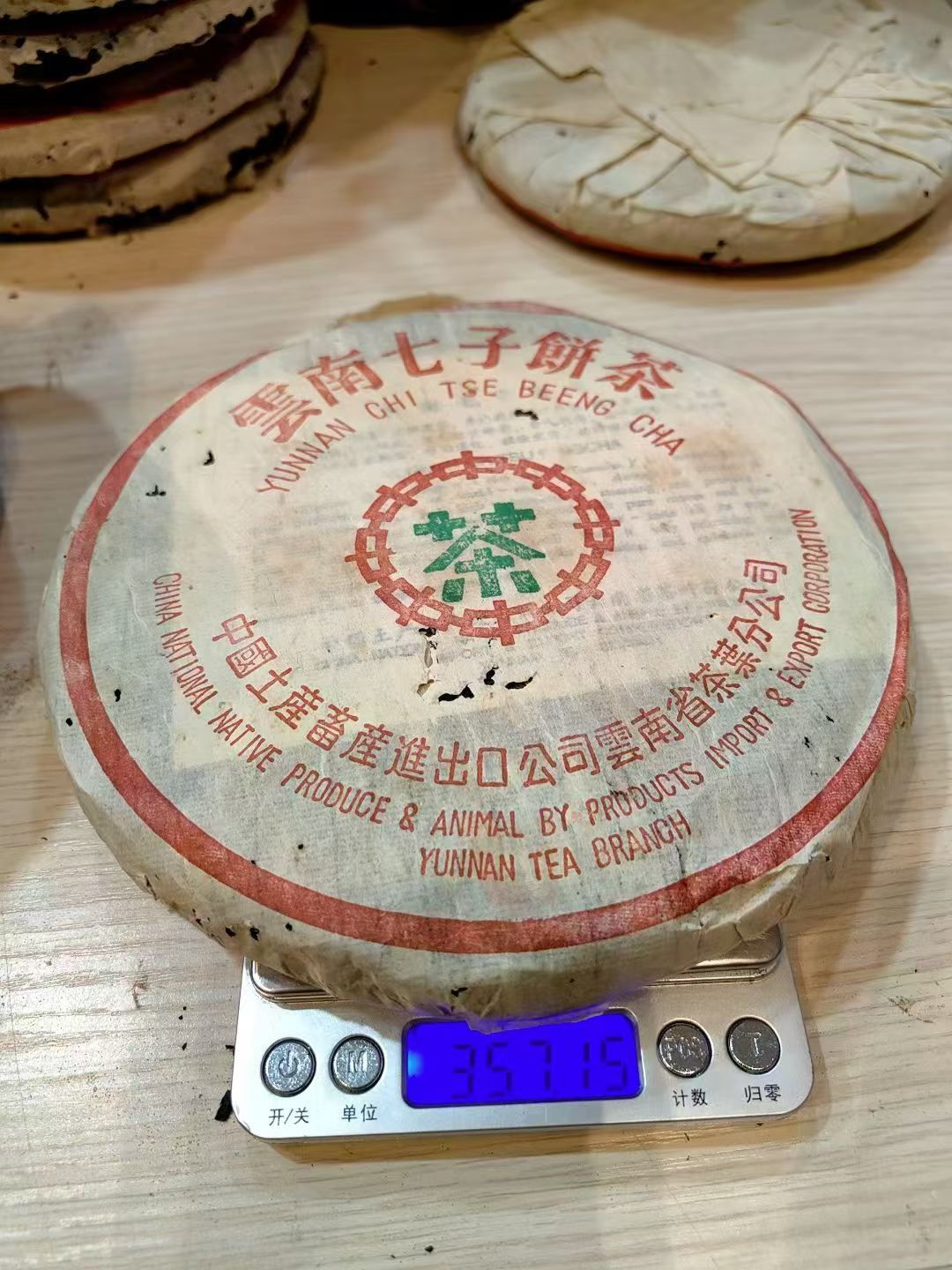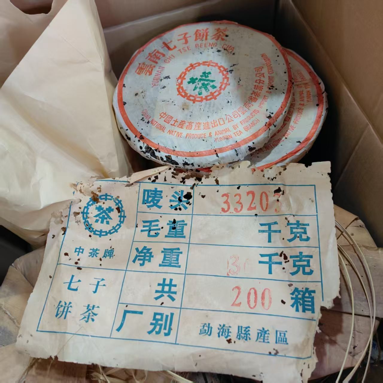 黎明33203 2001年黎明茶厂33203 357克古树青饼 据说是德信订制款,有拼班章料,苦韵味深长,饱满度好 散片,散提! 苦甜苦甜的,布朗底