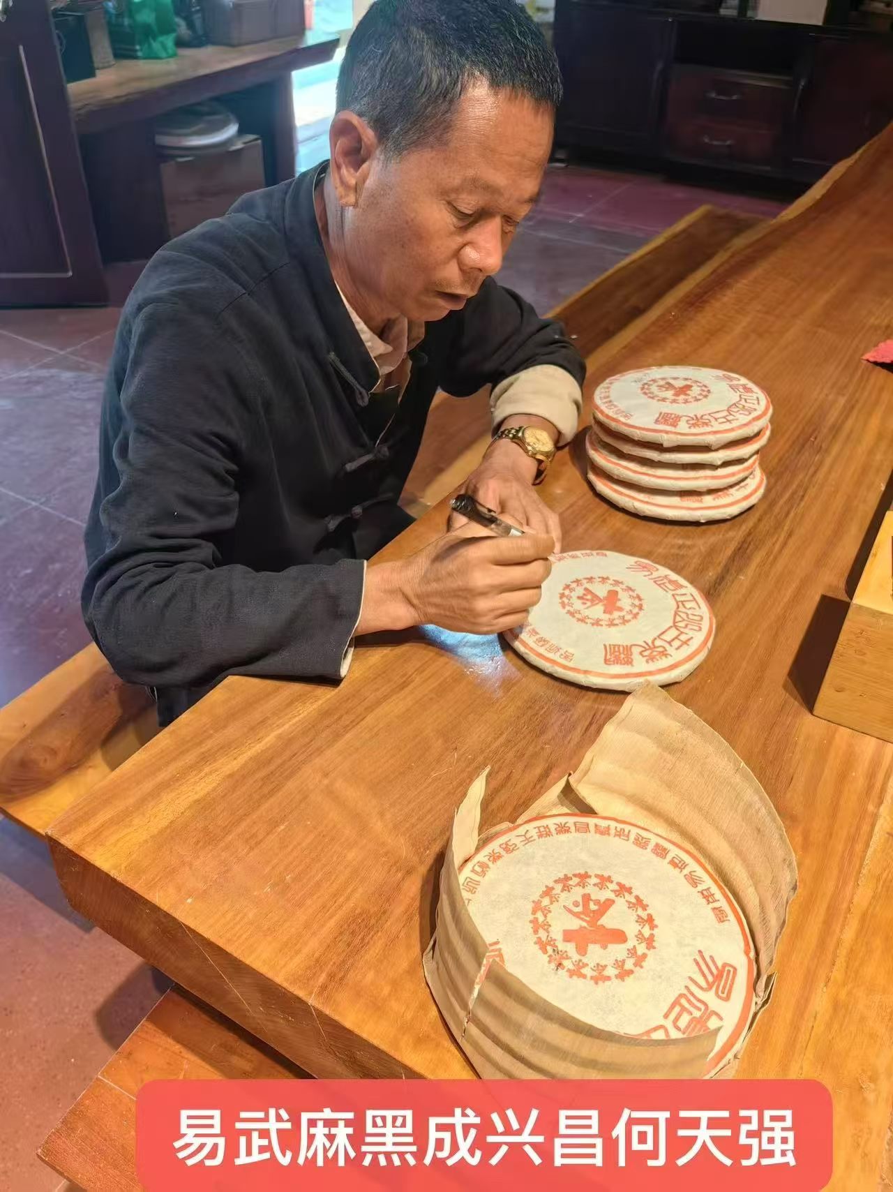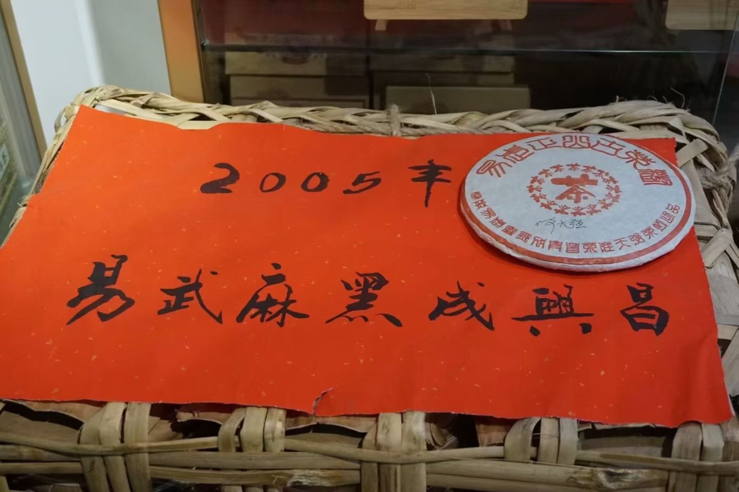 易武麻黑高品熟茶 2005年成兴昌易武麻黑 原件竹筐/42片一件(何天强监制) 高端易武原料,条索黄嫩粗壮,茶香纯净,汤质厚糯,浓稠醇厚,完美仓储,不容错过的易武好熟茶!
