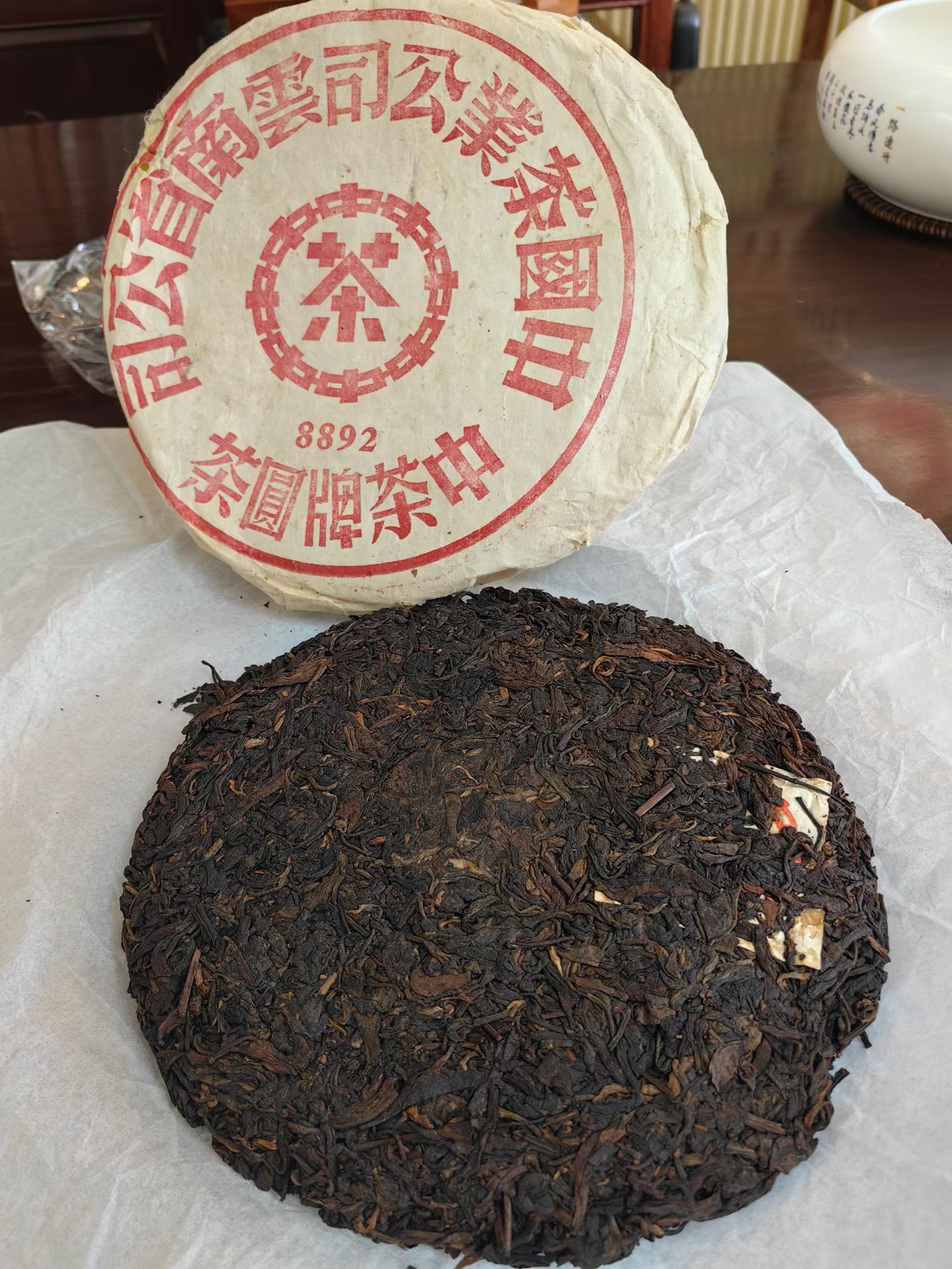 八十年代王曼源藤条沱250g 80年代未.世界茶文化创会会长【王曼源】制,早期藤条绑,藤条绑广泛使用在80年代后期少用,250克苹果绿青沱,每条5沱,早期香港回流,闻鼻香醇,水路滑厚细,喉韵甘甜,老韵明显 八十年代王曼源首批8892大红印 首批八十年代大红印8892樟香青饼 易武古树料,选用87年88年89年三年料,在89年压制。 药香浓郁,汤稠滑,很耐泡。