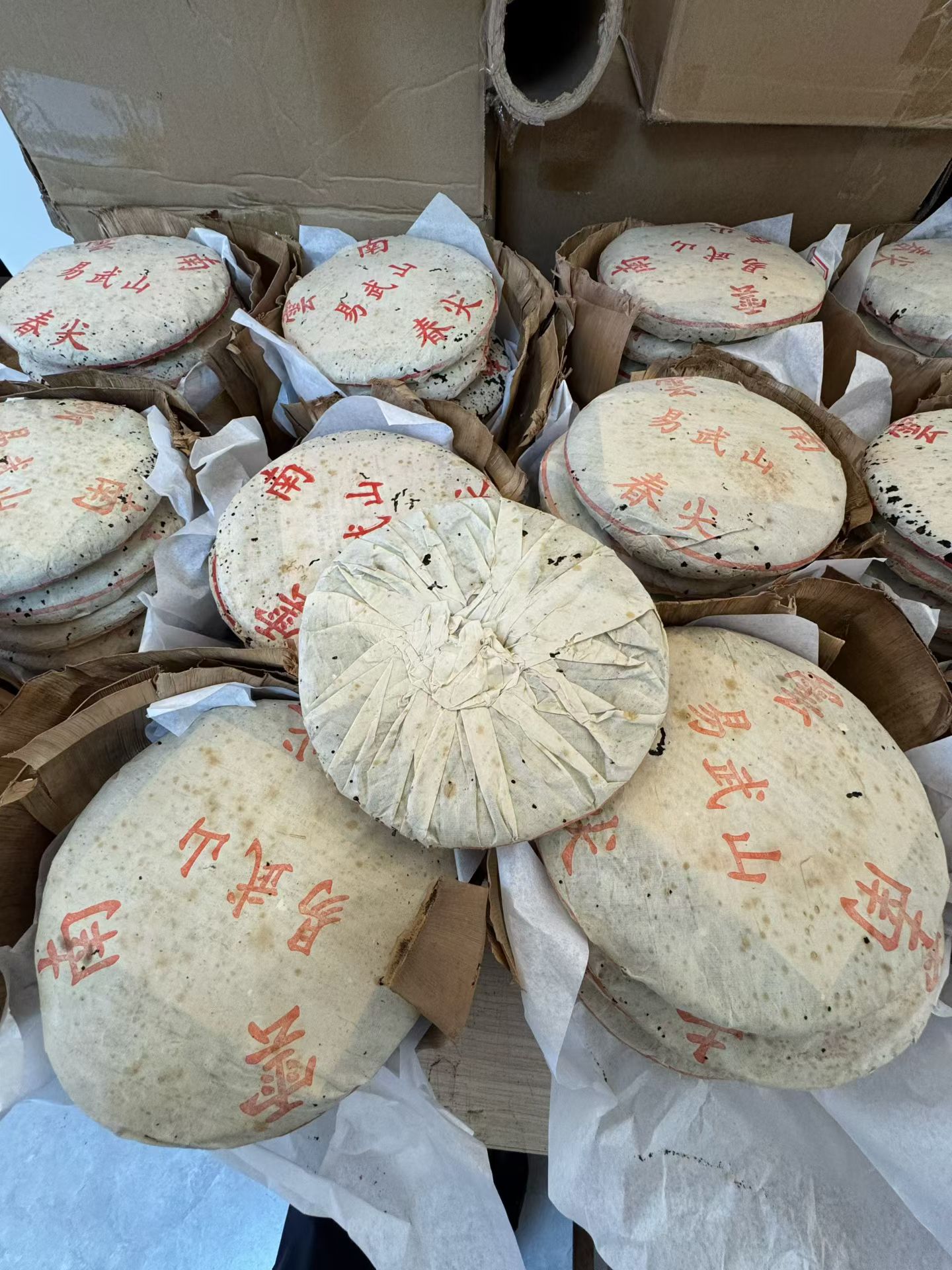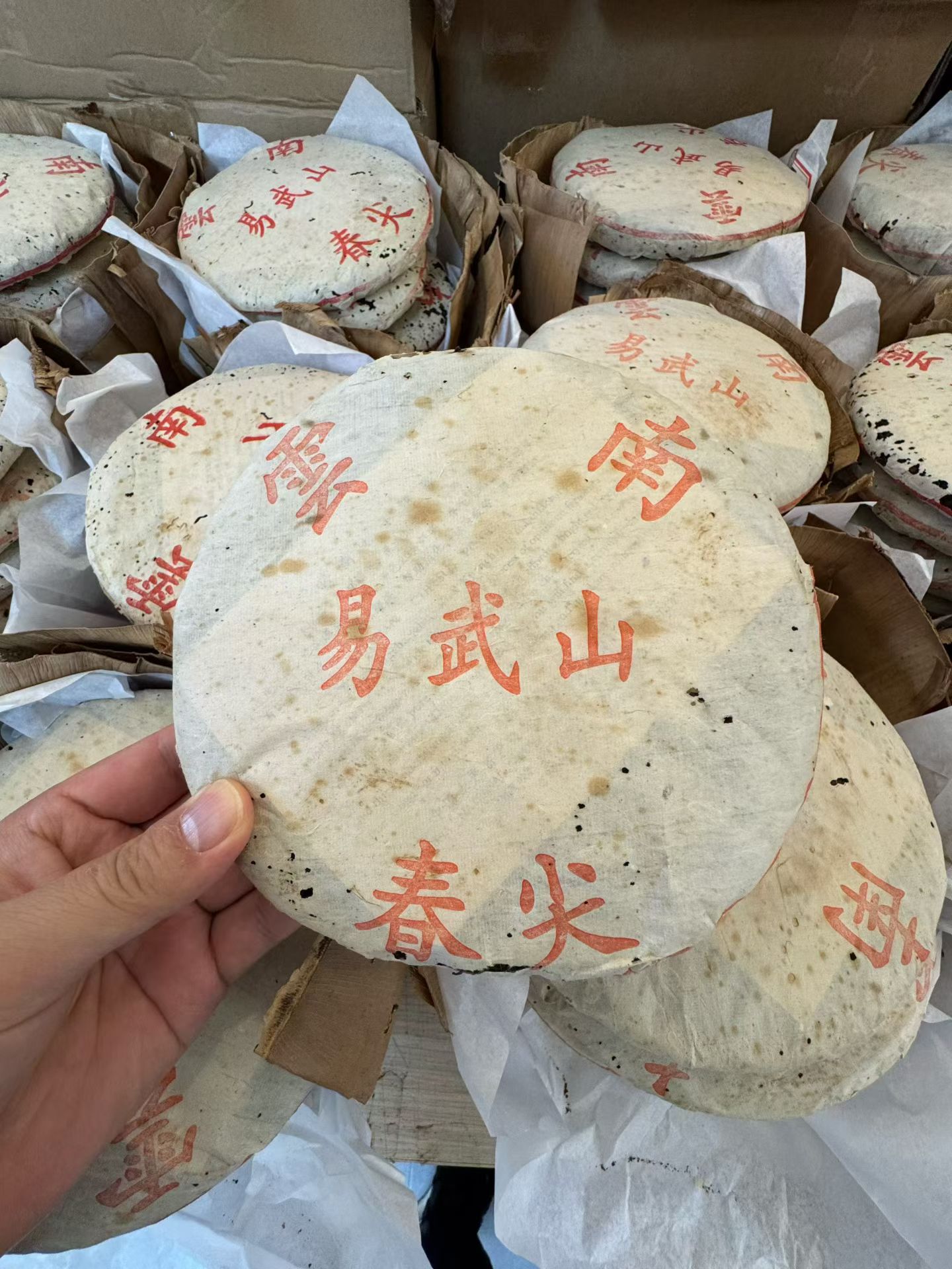 1999年易武山春尖 首批格纹厚纸.易武山春尖. 勐海布朗料,茶味浓郁带苦底 ,烟香入汤 ,汤润有老味感 木质香,勐海茶韵足。